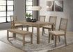 Establish an inviting space for family and friends to enjoy delicious meals with a rustic farmhouse dining table. The rectangular profile of the table offers versatility, blending beautifully in kitchens and dining rooms. It showcases lovely Asian hardwood construction for excellent durability and craftsmanship. A washed brown finish is wire brushed to create texture and depth in your dining room. A clean, classic silhouette features straight lines, with a barely recessed apron and square post legs.